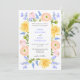 Esta tarjeta de invitación de boda presenta un delicado borde floral con rosas, ranunculus y lavanda en tonos pastel. La tipografía elegante y los suaves elementos de acuarela la convierten en una opción perfecta para una boda romántica en un jardín o en un entorno al aire libre. Puede personalizarla con sus datos para darle un toque personal.