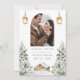 Anuncia tu boda con estilo invernal acogedor con esta tarjeta de save the date rústica. Con una encantadora escena de cabaña nevada enmarcada por árboles de hoja perenne y faroles, este diseño emana calidez y elegancia natural. Agrega tu foto y personaliza los nombres y la fecha para un recuerdo único y sentido que tus invitados amarán.