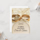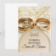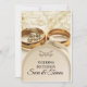 Una invitación de boda atemporal y elegante que presenta anillos de boda clásicos en oro y un fondo lujoso. Perfecta para bodas tradicionales o modernas. Totalmente personalizable con nombres, fechas y detalles.
