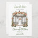 Tarjetas de invitación de boda con tema de Gazebo personalizadas con sus nombres y fecha de boda para que sus invitados sepan que deben guardar su fecha especial.