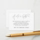 Esta hermosa tarjeta de pozo de deseos en blanco y negro es la forma perfecta de solicitar cortésmente un regalo en efectivo a amigos y familiares el día de la boda. Cuenta con un poema lindo y una expresión de agradecimiento de la novia y el novio. Puedes encontrar las invitaciones y tarjetas de boda a juego en mi tienda.