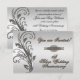 Un diseño de imágenes de Digitalbcon con un tema de color plateado con una variedad de imágenes personalizadas, formas, patrones, estilos y fuentes en esta tarjeta de invitación de confirmación de asistencia al aniversario de bodas de plata única. Esta tarjeta también viene con un diseño coincidente en el reverso con letras de texto personalizadas para adaptarse a su ocasión especial.