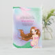 El mar que gira suavemente alrededor de una hermosa sirena rubia crea el perfecto efecto místico para esta preciosa carta de invitación de cumpleaños con temática marina.