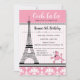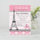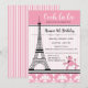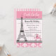 Invitación de Cumpleaños con Tema de Caniche y Torre Eiffel de París en Rosa