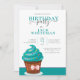 Divertido y fantástico, colorido y alegre, este divertido cupcake teal dice ¡invitación de CUMPLEAÑOS!