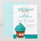 TARJETA DE INVITACIÓN DE CUMPLEAÑOS CUPCAKE TEAL F