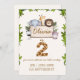 Celebre el día especial de su hijo con esta adorable tarjeta de invitación de cumpleaños de animales de la selva. Con ilustraciones adorables de un león, elefante, jirafa, cebra e hipopótamo rodeados de hojas verdes de la selva, este diseño simple pero encantador es perfecto para fiestas de cumpleaños de niños, eventos temáticos de safari o baby showers.