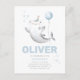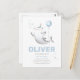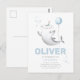 Tarjeta postal de invitación de cumpleaños con tema de tiburón. Para niños. Globo. Personalizable. Personalizada. Tiburón martillo. Sombrero de cumpleaños. azul. Lunares. Globos. Pintado a mano. Dibujado a mano.
