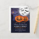 Tarjeta Postal de Invitación a Fiesta de Cumpleaños de Halloween con Jack O'Lantern Espeluznante. invitaciones de fiesta personalizadas para niños fiesta de cumpleaños de halloween espeluznante con calabazas de Jack O'lantern y murciélagos sobre la luna. Plantilla fácil de usar para agregar los detalles de su fiesta.