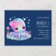 Tarjeta postal de invitación de cumpleaños con una imagen de un pulpo femenino adorable con una flor en la cabeza. Ojos grandes y brillantes y una cara amigable.