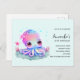 Tarjeta postal de invitación de cumpleaños con una imagen de un pulpo femenino lindo con una flor en la cabeza. Ojos grandes brillantes y una cara amigable.