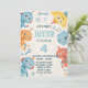 Potencia la celebración con esta adorable invitación de cumpleaños de robot de acuarela para niños. Con ocho robots coloridos de estilo cartoon asomándose desde todos los lados, rodeados de engranajes y herramientas divertidas, esta tarjeta vertical de 5x7 pulgadas es perfecta para niños y niñas amantes de la tecnología. El diseño incluye un área central espaciosa para todos los detalles de tu fiesta y es ideal para fiestas de cumpleaños con tema de robots, STEM o futuristas.