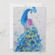 Tarjeta de Invitación de Cumpleaños en Acuarela Arte de Pavo Real Azul. Diseñada a partir de mi pintura original en acuarela.