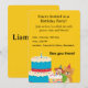 Una invitación de cumpleaños amarilla brillante y alegre con un estilo juguetón e infantil perfecto para las fiestas de los niños. Colores divertidos y una vibra alegre hacen que esta tarjeta sea ideal para celebrar el día especial de un niño con sonrisas, emoción y recuerdos felices.