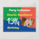 invitación para una fiesta de cumpleaños especial con nombre y número de años. Tarjeta postal de invitación de cumpleaños para un joven de 13 años. Agrega tu propia foto y cambia el tamaño según sea necesario.