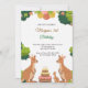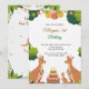 Tarjeta de invitación de cumpleaños de canguro lindo para fiestas de niños. Con animales juguetones, globos y un pastel festivo, esta plantilla editable es perfecta para niños o niñas. Personaliza fácilmente con el nombre de tu hijo y los detalles de la fiesta.