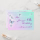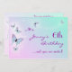 Diseño de imágenes Digitalbcon con un tema de color rosa, púrpura y azul con una variedad de imágenes, formas, patrones, estilos y fuentes personalizados en esta tarjeta de invitación de cumpleaños única. Este colorido diseño seguro que creará una emoción mágica para su celebración especial de cumpleaños. Se completa con un diseño de coincidencia al revés con letras de texto de personalizable tanto en la parte delantera como en la trasera para que se adapten al evento de cumpleaños especial de su hijo.