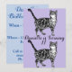 Invitación de cumpleaños púrpura con arte de gato atigrado. Diseñada a partir de mi pintura original de acuarela.