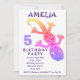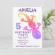 Tarjeta de Invitación de Cumpleaños para Niñas con Lagarto Gecko Rosa Lindo. Esta invitación tiene un lindo lagarto gecko rosa de colores arcoíris.
