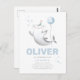 Tarjeta postal de invitación de cumpleaños con tema de tiburones. Para niños. Globo. Personalizable. Personalizada. Tiburón martillo. Sombrero de cumpleaños. azul. Lunares. Globos. Pintado a mano. Dibujado a mano.