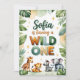 Invitación de cumpleaños al safari "Wild One" con animales de la selva acuarela (león, jirafa, elefante, cebra) con hojas tropicales. ¡Ideal para fiestas de primer cumpleaños! ✨ Sofia en la parte delantera + en blanco para los detalles del fiesta ✨ Impresión de alta calidad en el material de cartón premium ✨ Puede crear con CUALQUIER nombre a petición - sólo envíame un mensaje! Ideal para las celebraciones temáticas de Wild One, fiestas de safari y el primer cumpleaños del bebé.