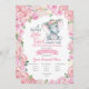 ¡Una Niña Dulce y Pequeña está en camino! Invitación Personalizada de Cumpleaños de Elefante/ Cacahuete Doble Cara Rosa y Gris para celebrar la llegada de la nueva bebé