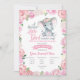 ¡Una Niña Dulce y Pequeña está en camino! Invitación Personalizada de Baby Shower de Elefante/Maní Doble Cara Rosa y Gris para celebrar la llegada de la nueva bebé