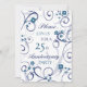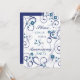 Tarjeta de invitación de fiesta de bodas de aniversario número 25 con elegante patrón floral blanco y azul, delicada y elegante con remolinos divertidos. Personalizable con los detalles de su fiesta.