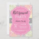 Tarjeta de invitación de fiesta de retiro floral. Invitación de la Fiesta de Jubilación de Mujeres. Patrón de flores florales. Fondo rosa. Gary amarillo Naranja verde morado.