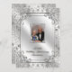 Un diseño de imágenes Digitalbcon que presenta un tema de color plata platino y elementos de brillo de diamante con una variedad de imágenes personalizadas, formas, patrones, estilos y fuentes en esta tarjeta de invitación de foto de aniversario de bodas de diamante única. Este diseño elegante y atractivo viene completo con un diseño complementario en el reverso con letra de texto personalizable para adaptarse a su ocasión especial. ESTE DISEÑO TAMBIÉN ESTÁ DISPONIBLE EN TAMAÑOS DE TARJETA 4.25X5.5, 4.5X6.25, 5X7 Y RSVP 3.5X5 ASÍ COMO EN TARJETA DE AGRADECIMIENTO Y PLACA DE FOTO.