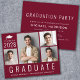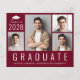 Invitación de graduación y fiesta minimalista moderna de color rojo borgoña económica con un collage de 4 fotos, "Graduado" escrito en letras blancas grandes y su año de graduación, nombre y escuela o universidad en tipografía blanca simple. Agregue los detalles de la fiesta en el reverso.