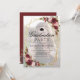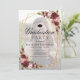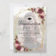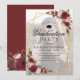 Elegante invitación de fiesta de graduación con una foto desvanecida del graduado, un conjunto de flores de acuarela de color rojo marsala, borgoña y rosa claro, una forma geométrica con brillo dorado, un birrete y una plantilla de graduación moderna de la promoción de 2025 fácil de personalizar.