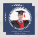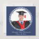 Tarjeta de invitación de Graduación de Fotografía Azul 1 Moderno. Con diseño repetido y detalles de personalizable en la parte posterior.