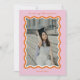 La tarjeta de Invitación Bright Squiggles Graduation Card es una manera vibrante y elegante de compartir sus emocionantes noticias. La parte delantera de esta llamativa tarjeta muestra una foto enmarcada por un divertido borde de línea de sacudida en un naranja retro, ambientada en un animado fondo rosa. Este divertido y moderno diseño resalta la personalidad y alegría de su graduado en esta ocasión especial. El texto del personalizable en el frente incluye el nombre del graduado, la escuela y el año de graduación, lo que garantiza un toque personalizado que celebra su viaje único. La parte trasera de la tarjeta ofrece amplio espacio para un mensaje sincero, que le permite expresar su gratitud, compartir planes futuros o simplemente transmitir su emoción por este hito significativo. Celebra tu logro con estilo con la tarjeta de Invitación de graduación Bright Squiggles. Es la mezcla perfecta de diversión y sofisticación, asegurando que su invitación se destaque y deje una impresión duradera en amigos y familia.