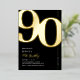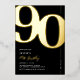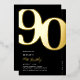 Celebre el comienzo de una nueva década con estilo con nuestras invitaciones de cumpleaños número 90 de alta calidad. Diseñadas con un número '90' en negrita en una fuente serif llamativa y detalles de papel de aluminio real en ricos tonos negros y dorados. Esta invitación moderna emana sofisticación y elegancia, ideal para alguien que aprecia el detalle. ¡Hazlo tuyo con nuestra plantilla fácil de personalizar para elevar tu celebración de hito!