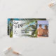 Tarjeta de Pasaje de Vuelo para Boda en la Playa con Icono de Corazón y Avión con Mapa Mundial de Arte de Línea Minimalista y Fondo de Playa de Palma - Agrega tu foto