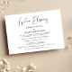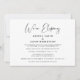 Tarjeta de invitación de anuncio de boda o recepción más pequeña y elegante para informar a familiares y amigos que se casarán en una ceremonia de boda íntima y pequeña, y para invitarlos a una recepción o fiesta posterior a la boda. "Nos escapamos" está escrito en una tipografía elegante y puede agregar sus nombres, fecha de la boda y detalles de la invitación de recepción en tipografía moderna simple.