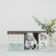 Impresión de damasco de ave dulce azul y marfil con tarjeta de invitación de bebé de contraste marrón y azul.