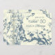 Invitación del quincuagésimo aniversario de bodas en elegante azul y beige con delicado patrón de árbol en flor. Personalizable con los detalles de su fiesta.