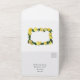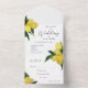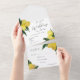 Una invitación de boda con un motivo de limón pintado al óleo. Tiene una tarjeta de respuesta desgarrada para facilitar las cosas para usted y sus invitados.