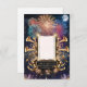 Celebra la llegada del Año Nuevo con esta deslumbrante invitación, que incluye un cielo nocturno repleto de fuegos artificiales coloridos y una luminosa luna llena. Las trompetas doradas anuncian las fiestas, mientras que el espacio blanco central espera los detalles de tu fiesta. El cartel proclama "Fiesta de Nochevieja" en un elegante guión, rodeado de brillantes dorados, marcando el tono para una noche inolvidable.