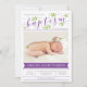 Tarjeta fotográfica de invitación al bautismo con elegante caligrafía y diseño follaje en color púrpura. Fácil de personalizar con su propio texto.