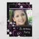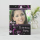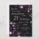 Tarjeta de invitación fotográfica fiesta de 21 años con elegante estampado floral negro, fucsia y rosa, delicado y elegante con juguetones. Personalizable con los detalles de su fiesta y su propia foto.