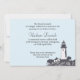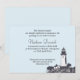 Una exquisita tarjeta de invitación funeraria con un motivo de faro sobre un tranquilo telón de fondo azul cielo. Celebrando recuerdos de días costeros, esto cautiva una vida llena de aventura.