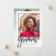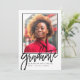 Esta tarjeta fotográfica es moderna y presenta a un "graduado" con letras a mano.