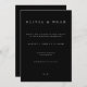 Estas elegantes y minimalistas tarjetas de invitación a la boda de la recepción presentan una tipografía de escritura moderna y texto limpio para un diseño negro sencillo y elegante que le encantará. Añade texto personalizado para proporcionar cualquier información adicional necesaria para tus invitados. Siéntase libre de enviarme cualquier pregunta relacionada con el diseño - ¡estaré encantado de ayudar!