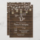 Tarjeta de invitación para aniversario de boda con luz de cuerda en frasco de Mason, tarjeta de invitación rústica con fondo rústico y de madera. Se puede utilizar para cualquier ocasión. Renovación de votos aniversario.