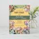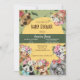Invitación para Baby Shower de Animales de Safari de la Jungla con adorables animales bebé elefante, jirafa, suricata, tigre, mono, panda y cebra rodeados de un fondo botánico. Personalizable fácilmente con tus propios detalles.