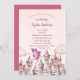 El hermoso chica rosado del hada sobrevuela un palacio encantado.