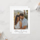 Elegante Invitación de Bodas de fotos Celebra tu amor con estilo con esta moderna tarjeta de invitación minimalista boda con tu foto favorita en el frente con acentos de escritura manuscrita de moda. Personalizado para Tu Historia de Amor Añade tus nombres y fecha de boda al frente, y personalizar la espalda con un mensaje sincero a la familia y amigos. El diseño limpio y los tipos de letra intemporales hacen de esto el placer perfecto para compartir tus grandes noticias. Moderno estilo Minimalista Diseñado con un fondo blanco, tipografía de guiones y espacio para una foto de tamaño completo, esta tarjeta de invitación equilibra maravillosamente la simplicidad y la sofisticación, perfecta para parejas que aman un aspecto elegante y contemporáneo.